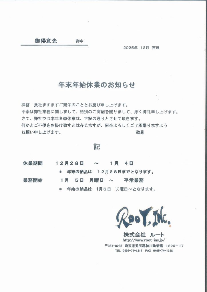 年末年始の休業ご案内 | s-20251212120417407_0001 | 株式会社ルート